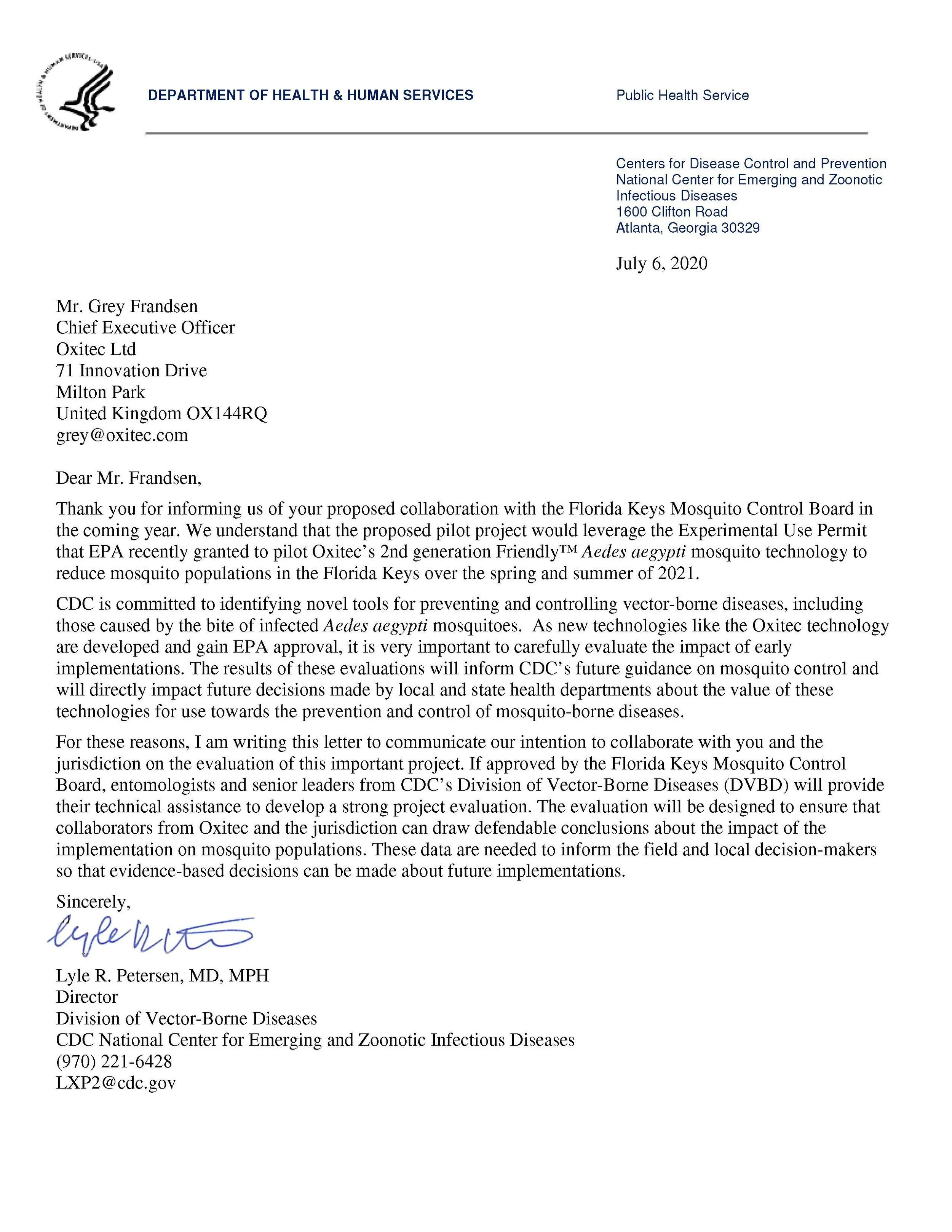 The U.S. Centers for Disease Control and Prevention (CDC) Announces Collaboration with Oxitec Oxitec Press Inquiries+1-202-792-3080press@oxitec.com FloridaSarah Halliday13 July 2020 Facebook0 Twitter Tumblr Pinterest0 0 Likes